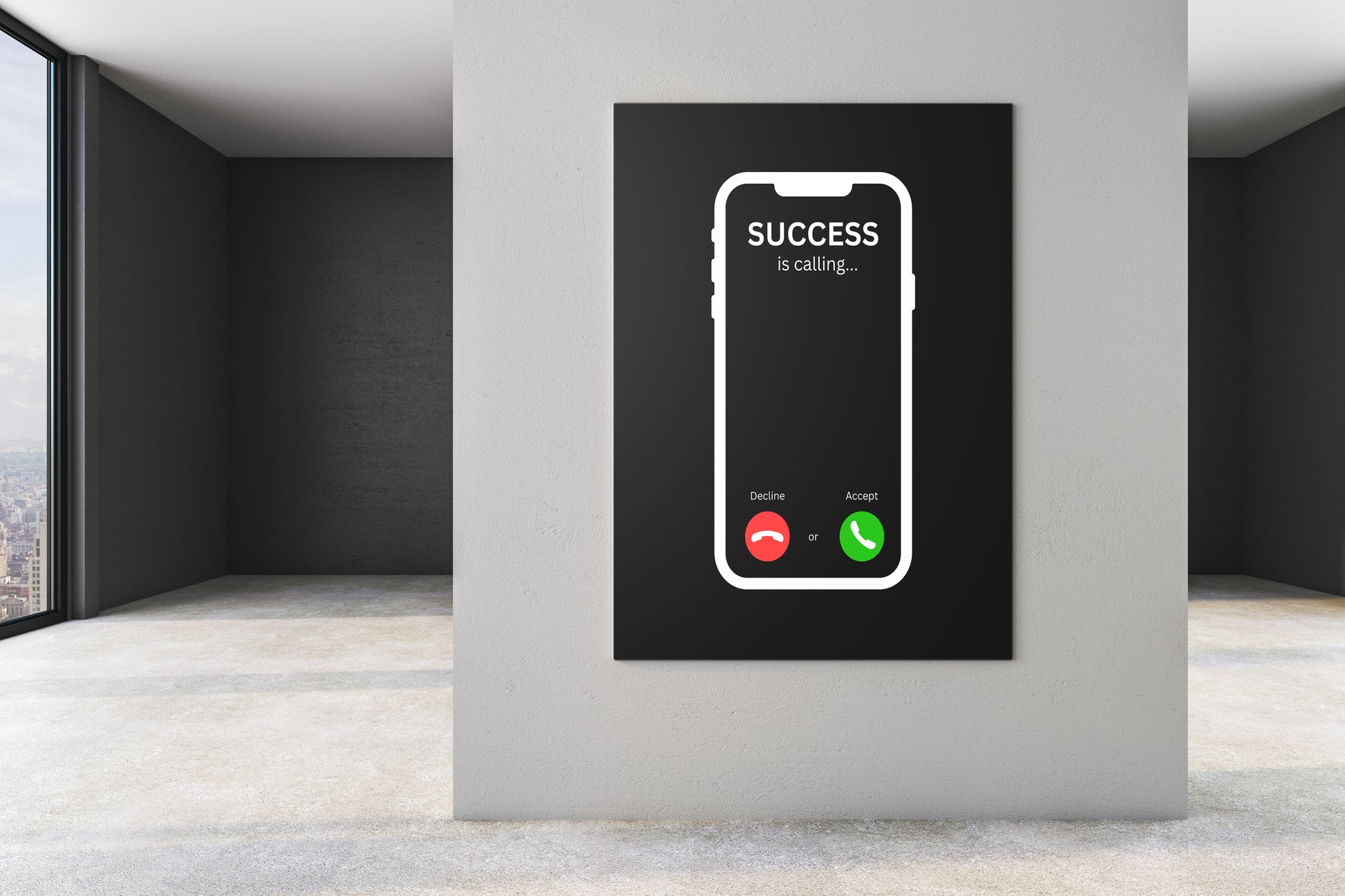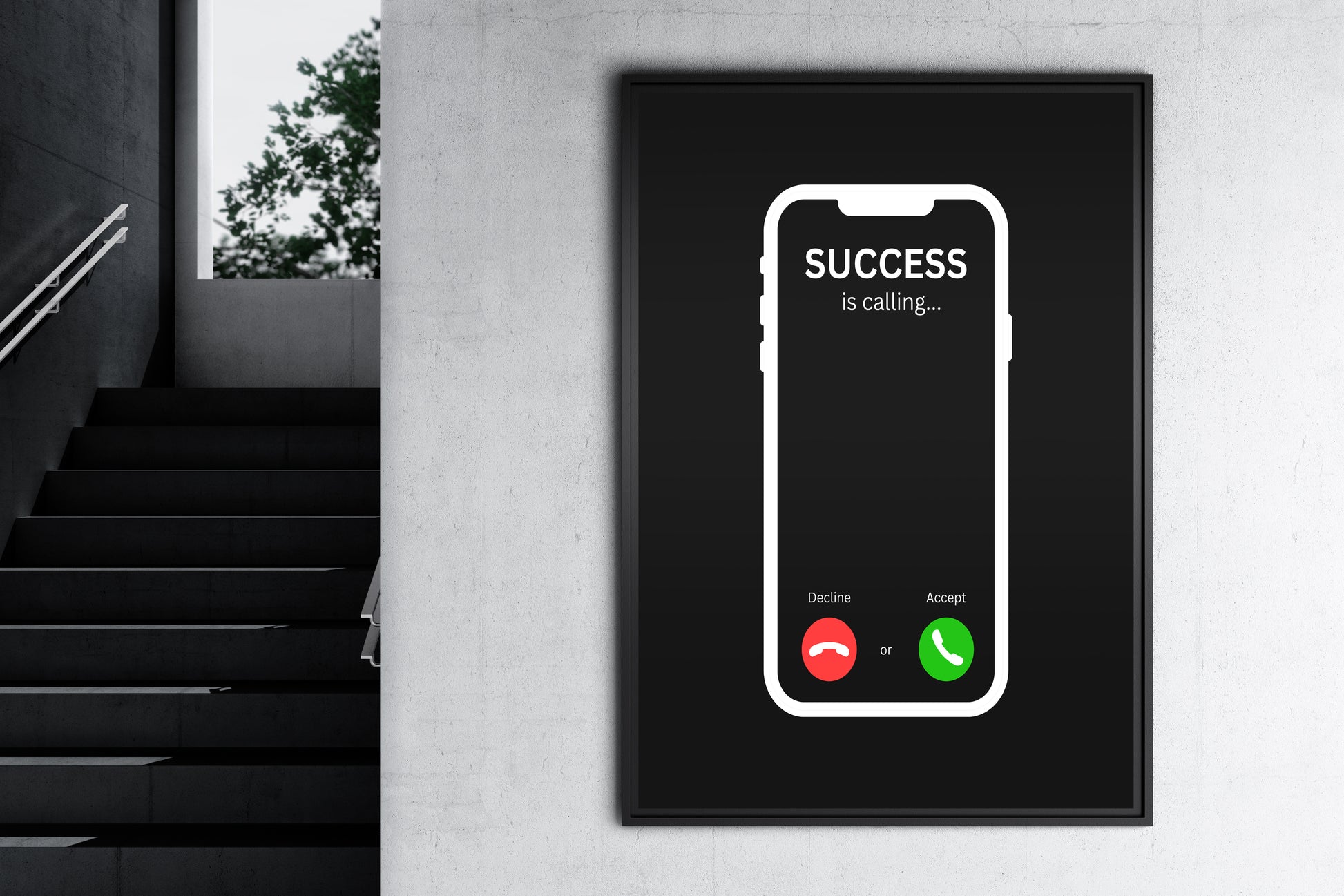 Visualize the journey to success as a phone call, where every choice matters. With the option to answer or decline, this artwork symbolizes the pivotal moments that shape our path. Hang it prominently as a daily affirmation to remain attentive to the calls of ambition.