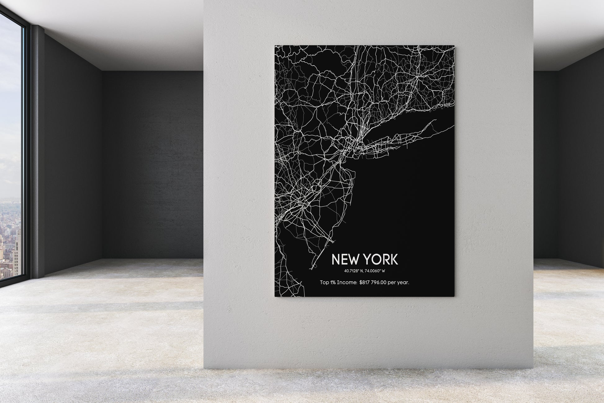 Every street on this map leads to a clear financial goal – the top 1% of New Yorks' income spectrum. Let this visual representation ignite your ambition, reminding you that the path to prosperity is navigable with determination. Hang it proudly, a beacon of possibility that fuels your drive.