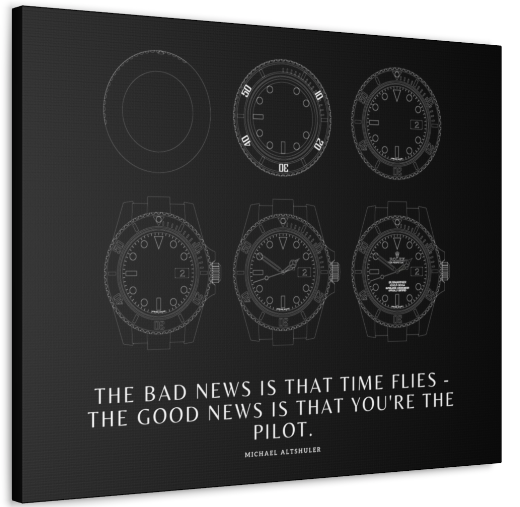Elevate your space with our exquisite canvas art featuring a luxurious timepiece, adorned with the motivational quote: "The bad news is that time flies, the good news is that you're the pilot." This artwork embodies the essence of seizing control over time and shaping your destiny.